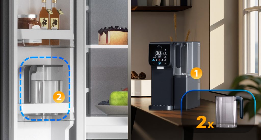 Với bình chứa phụ đi kèm, iSpring RCD100HCG đảm bảo bạn luôn có nước tinh khiết sẵn sàng mà không cần châm nước thường xuyên, đồng thời có thể dễ dàng cất trữ trong tủ lạnh hoặc sử dụng ngay.