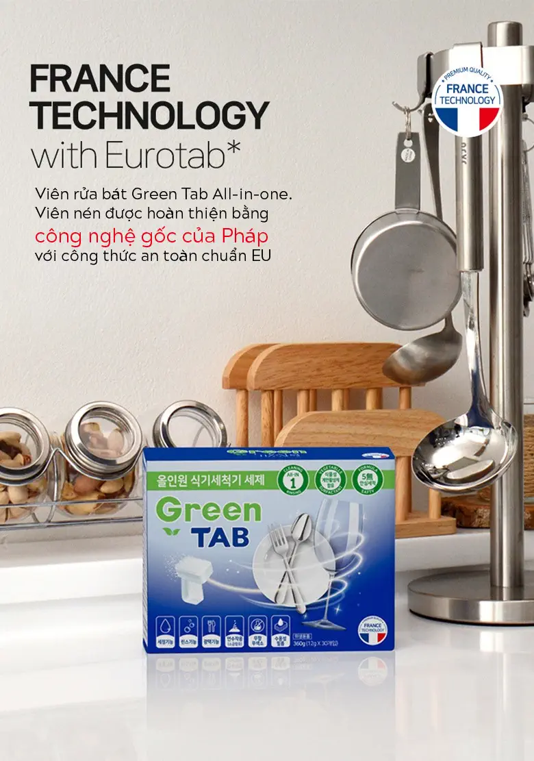 Viên rửa bát Sauber Green Tab mang đến một chuẩn mực mới về vệ sinh bát đĩa: Sạch bong sáng bóng nhưng vẫn cực kỳ an toàn. Sản phẩm được nghiên cứu đặc biệt để phù hợp với các loại vết bẩn cứng đầu trong ẩm thực Á Đông mà không cần dùng đến các hóa chất tẩy rửa độc hại.